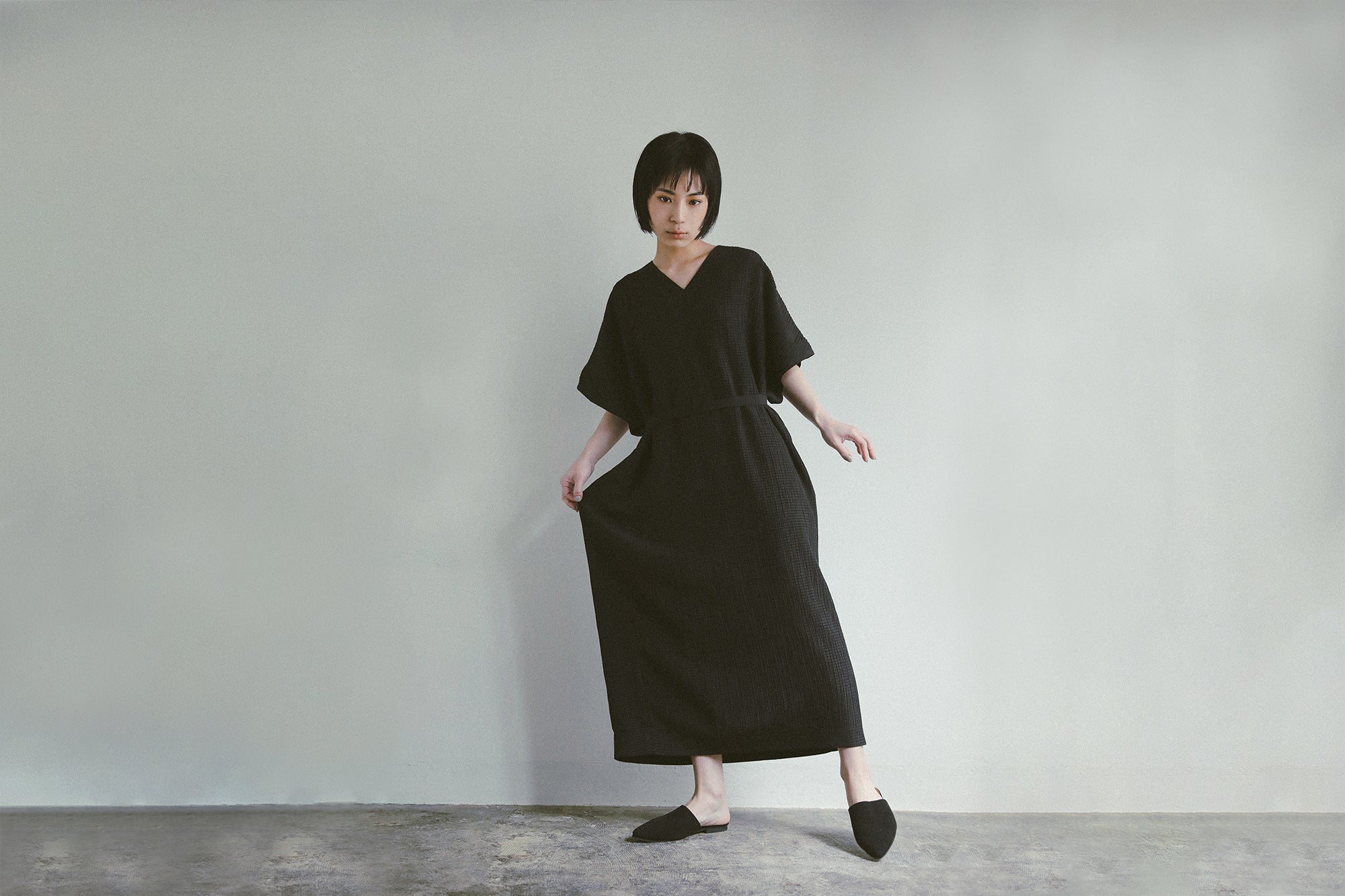 京都の伝統工芸「丹後ちりめん」を使った2wayのワンピースです。1300年以上にわたって織物が産み出されてきた丹後のちりめんと、レナクナッタのアプローチを掛け合わせて、新しい伝統を目指しています。